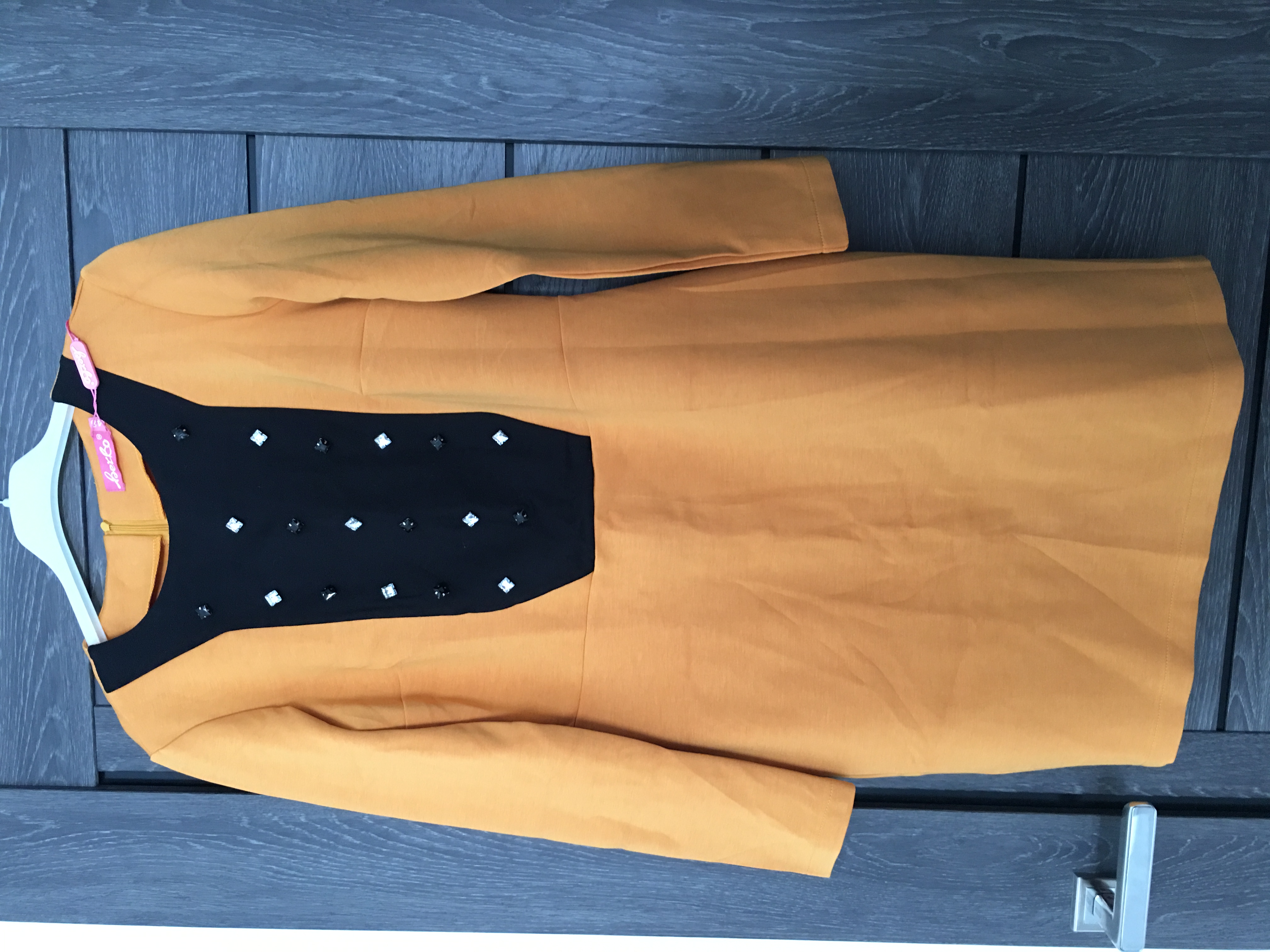 Платье очень качественно пошито, ткань плотная, фурнитура крутая, огромные стразы впереди, не знаю правда как это будет стираться, думаю ограничусь ручной стиркой. Идёт четко в размер. Село отлично, спасибо!